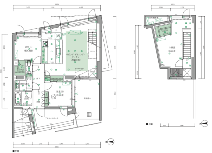 | 広さ | スペースの広さ:54㎡ (LDK : 約43㎡・各控室 : 11㎡) 天井高:2,350mm |